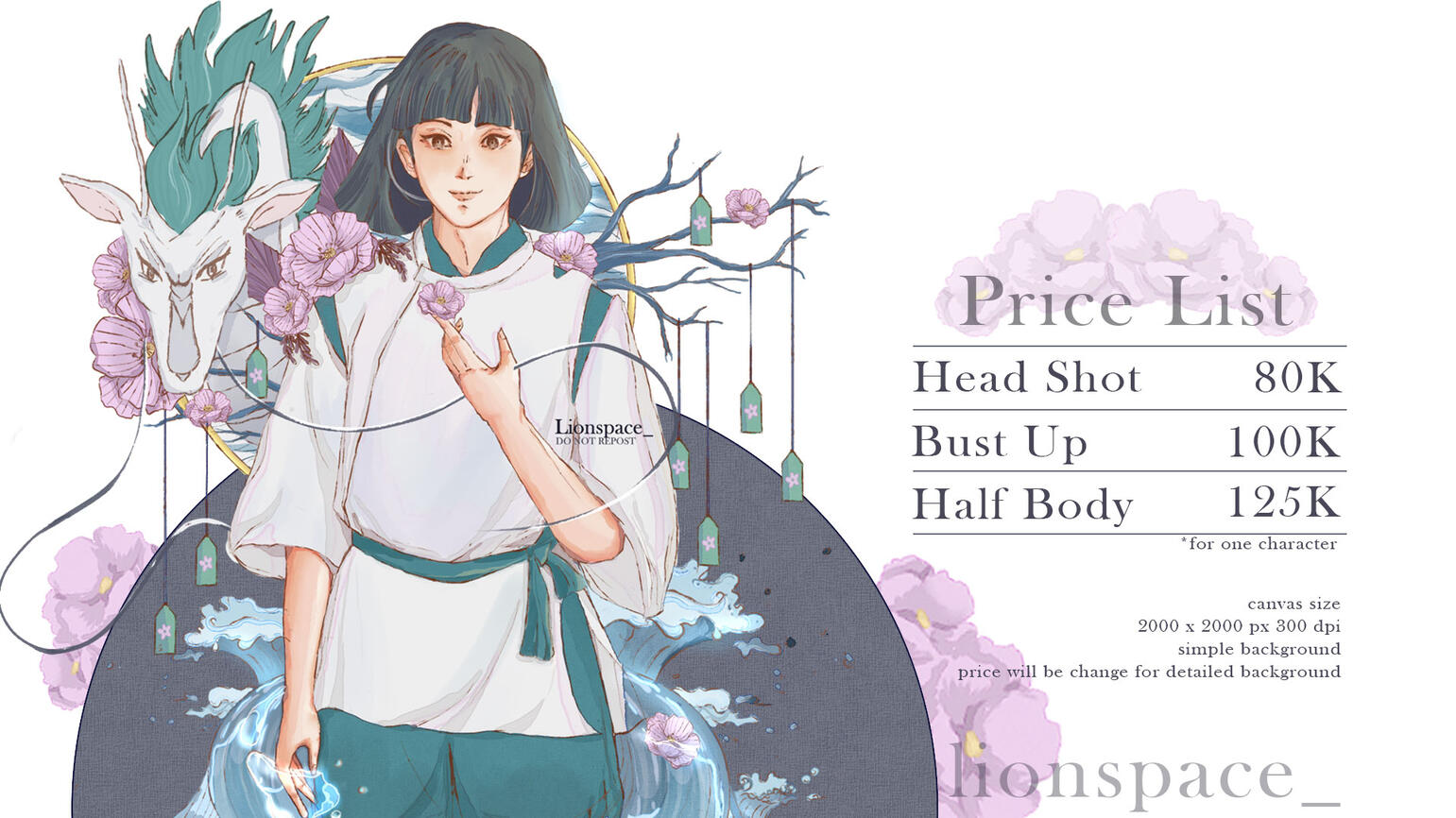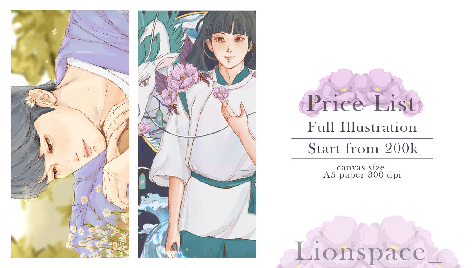 3. The rate on the price list is only for 1 character, if you add more characters on one canvas, there will be a charge 70% from the price list per character.